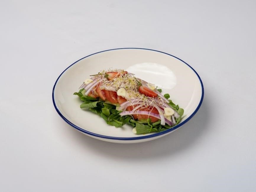 Explore delicious options like smoothies‚ oatmeal for breakfast‚ vibrant salads and soothing soups for lunch‚ and flavorful fish with vegetables for dinner!