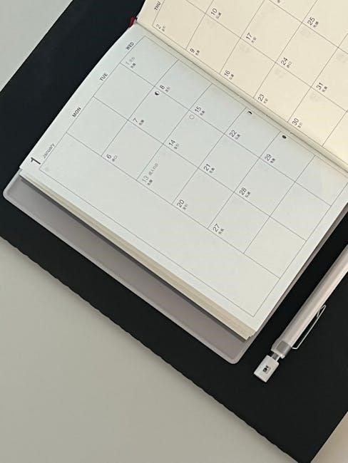 These review areas encourage reflection on accomplishments, challenges, and goals, fostering personal growth. The planner’s structure is ideal for individuals seeking a blend of scheduling and self-assessment. It’s a valuable tool for staying organized and intentionally planning throughout the year, offering a holistic approach to productivity.